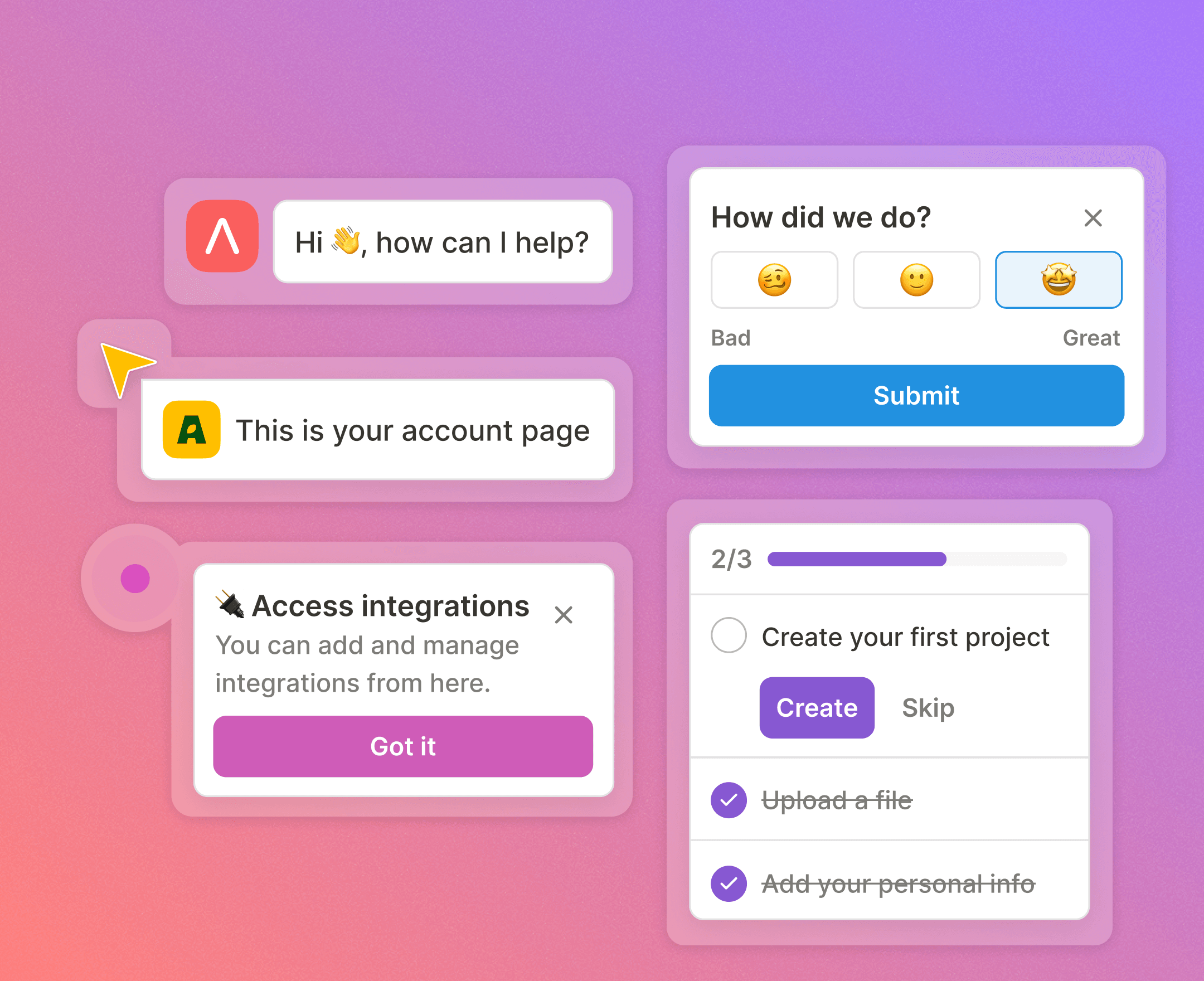 Tailor in-app communication to show users what they miss and get their feedback fast.