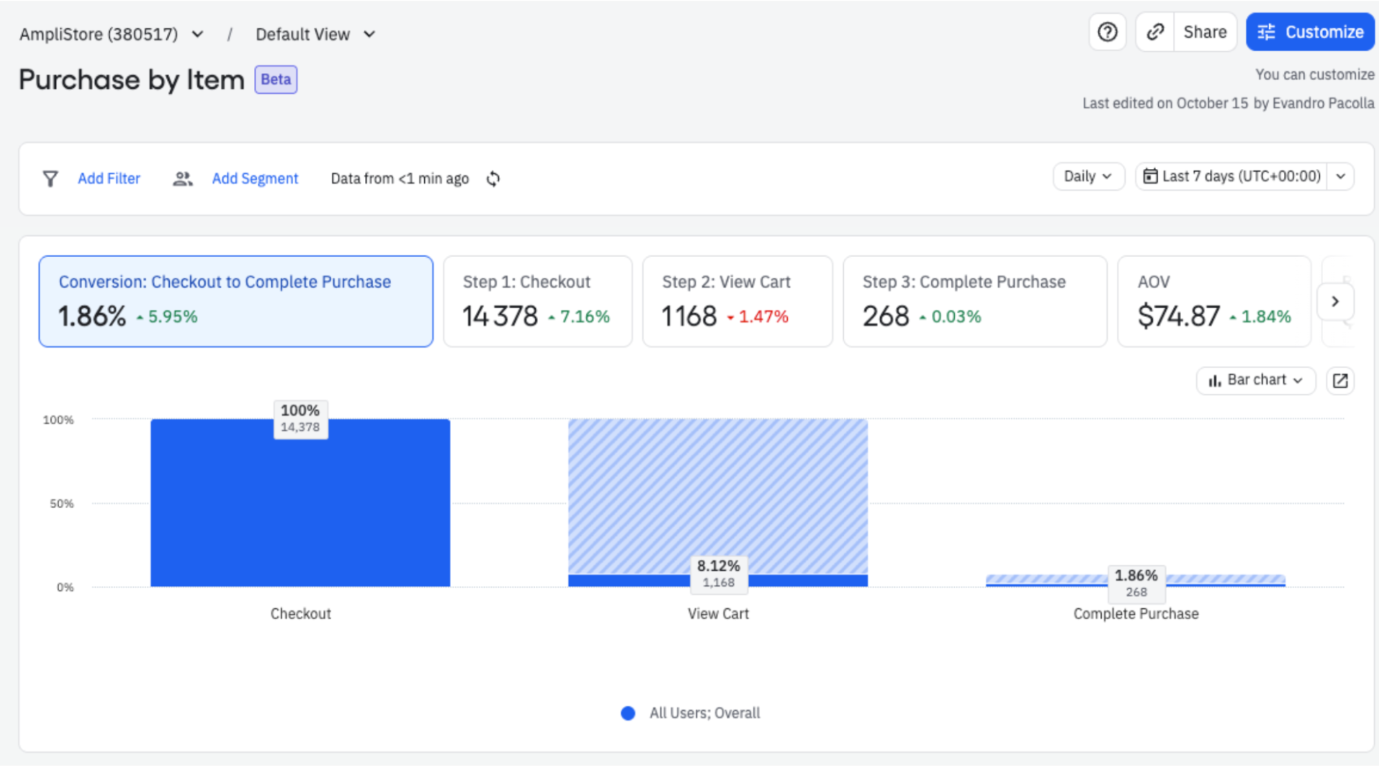 To use Purchase by item, your Amplitude implementation must send cart data as arrays. Learn more about this setup in Cart Analysis.