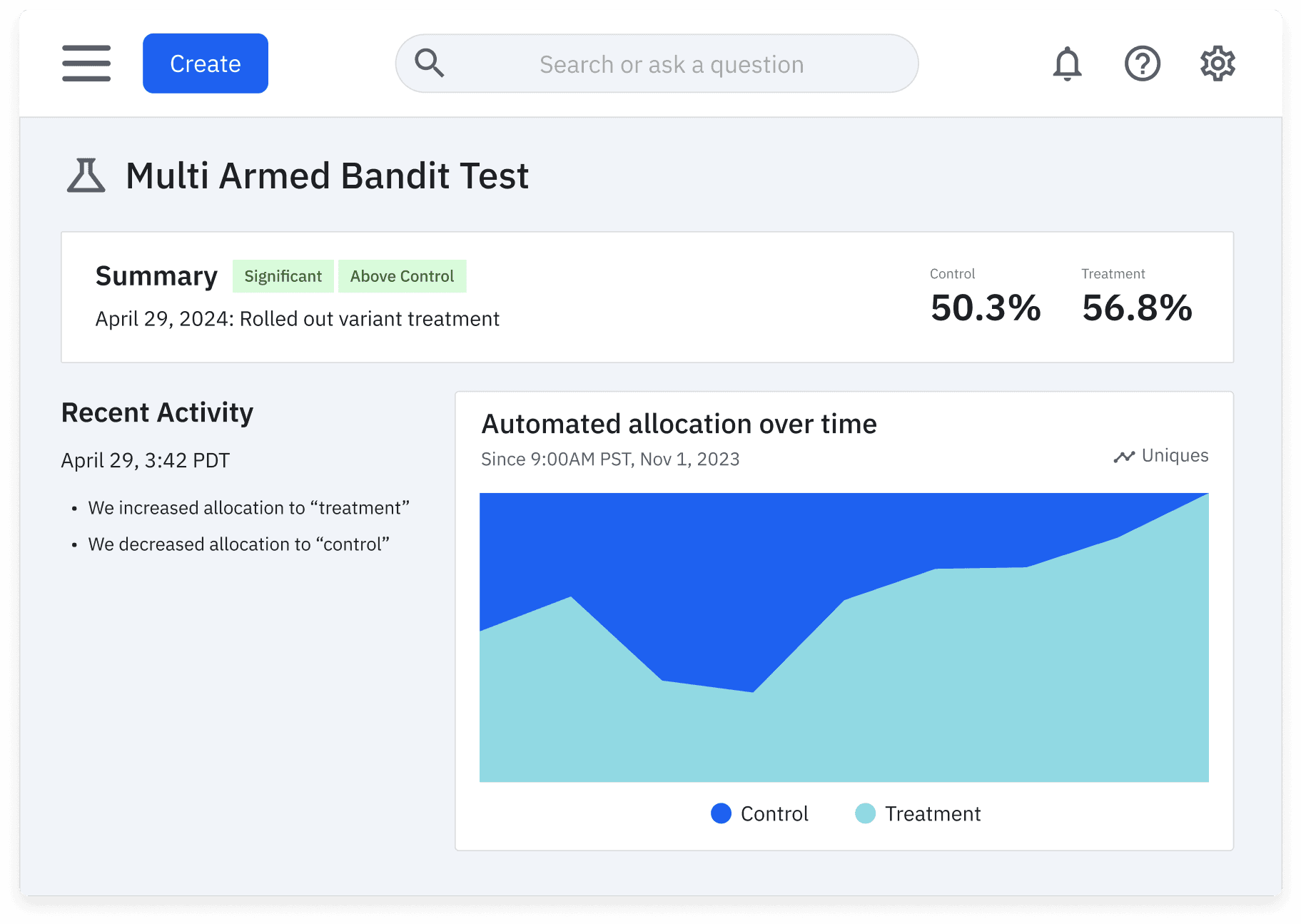- Concevez avec des tests séquentiels, CUPED, des multi-armed bandits, et plus encore