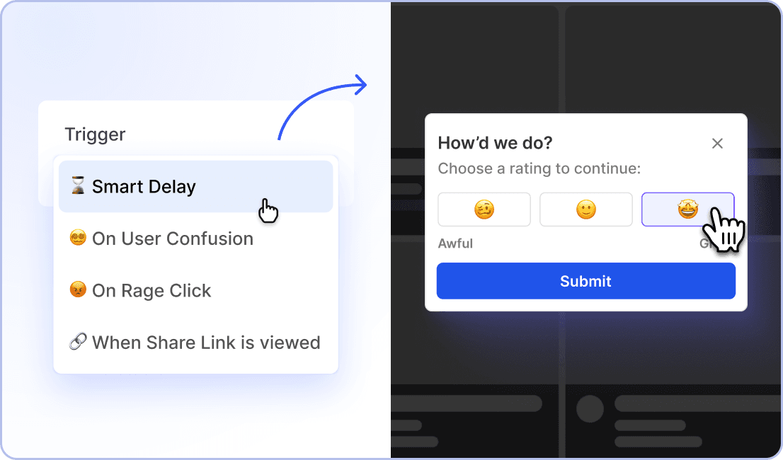 Set up triggers that match what users try to do in the moment. Prevent confusion, rage clicks, and more with contextually relevant information based on in-product behaviors.