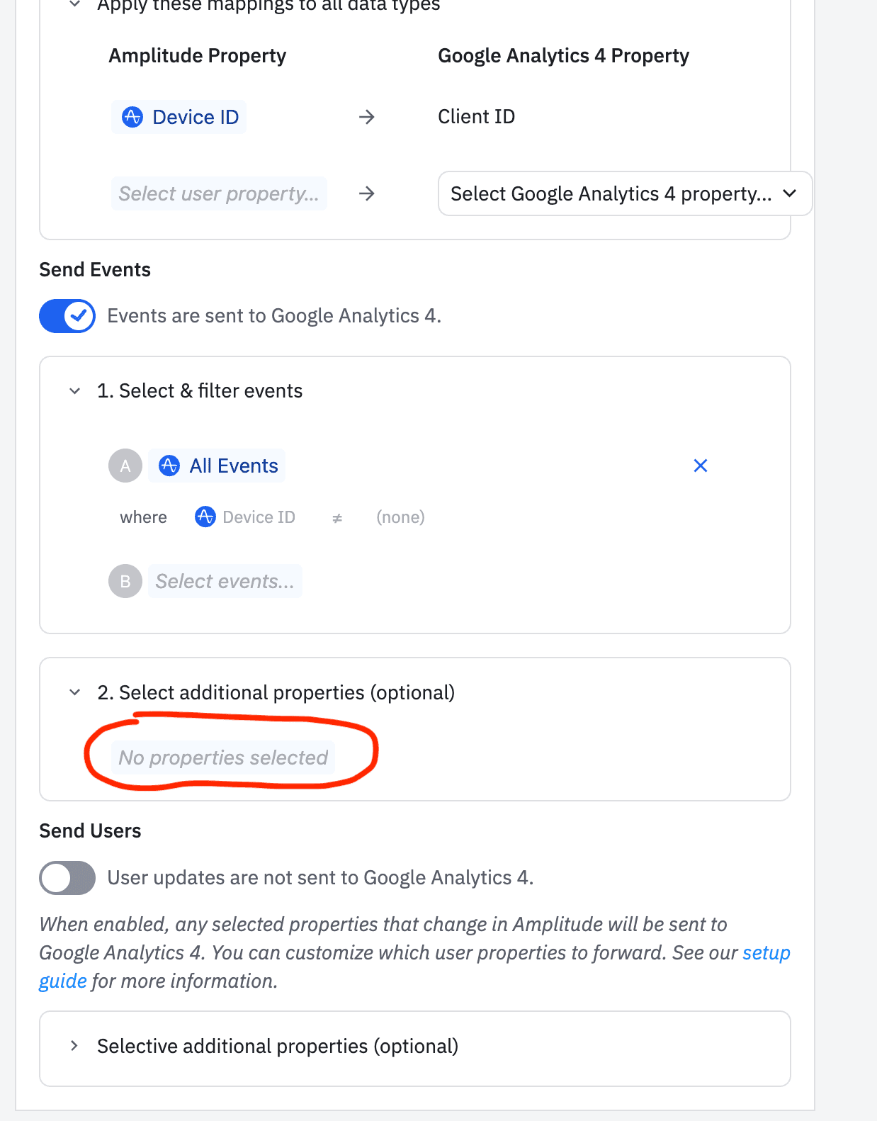 Where: Data > Catalog > Event Streaming Destinations > Send Events section > Select additional properties (optional)