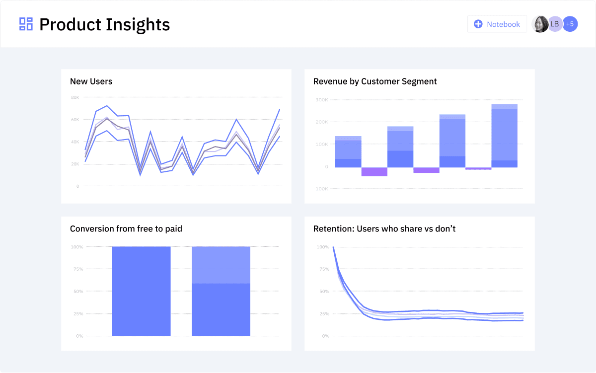 - Collaborate on your insights and reporting with dashboards and notebooks